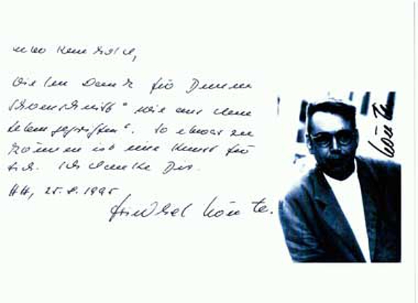 Was ich so bemerkenswert an Deinen geschnittenen Werken finde ist die ungeheure Genauigkeit. Du schneidest mit den Augen, den Umriss, das Profil der Leute, auf eine Art und Weise der Charaktersichtung. Jeder ist bei Dir willkommen, der keine Angst vor seinen Schatten hat, aber auch diejenigen die Angst haben lassen sich schneiden. Sie trauten sich dann mit den Worten: "Wenigsten sieht man meine Falten nicht (also kommt, höre mein Guter, unter deiner Schere vieles ans Licht)!" Du warst und bist mir stets eine Quelle der wesentlichen Inspiration und der lieben menschlichen Zugewandtheit. Du bist ein Meilenstein auf meinen Weg den ich bei mir trage. Du hast häufig in mir Fragen geweckt, sei es bewusst oder unbewusst, mich von Herzen gefördert wo und wann immer du nur konntest.
